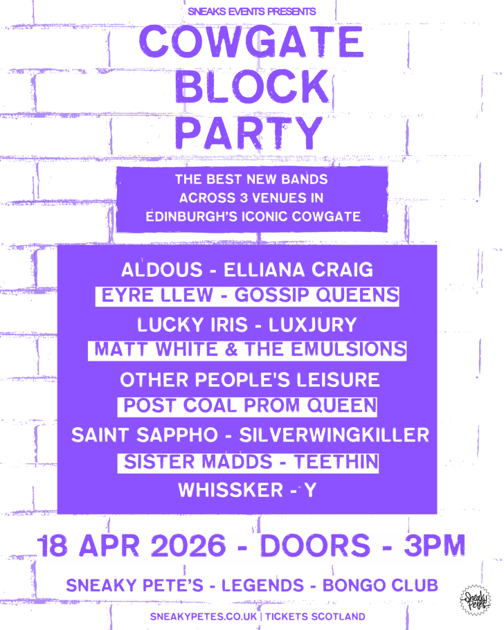 “First-of-its-kind Cowgate Block Party surges through Edinburgh’s Old Town for a showcase of the best new bands” – Clunk Magazine