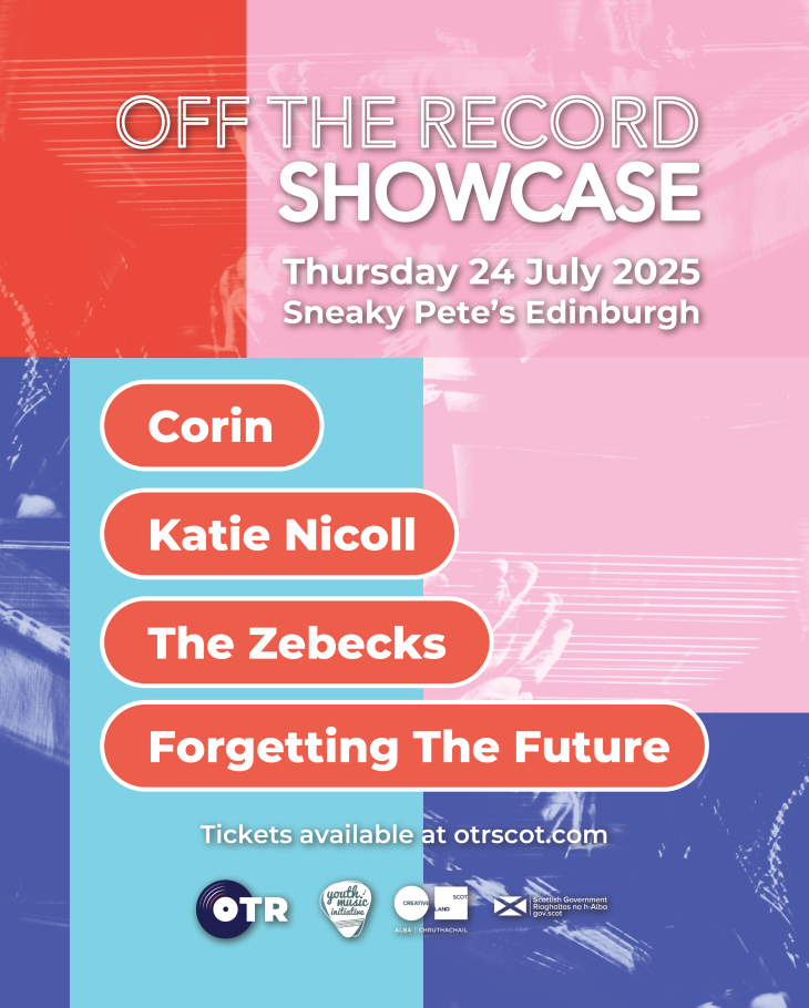 Off The Record returns July 24th for a showcase of Scotland’s most exciting emerging artists at Sneaky Pete’s, Edinburgh. Corin, Forgetting The Future, Katie Nicoll and The Zebecks all join the line-up spanning Indie, Pop and Alternative Rock.
