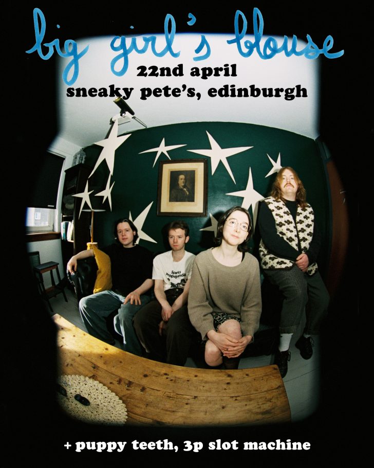Big Girl’s Blouse are a Glasgow-based alternative punk band formed by Emmy Leishman in 2020. Influenced by the emotive and powerful storytelling of the likes of Sleater – Kinney and PJ Harvey, their songs recount the growing pains of adulthood of a young woman far away from home.