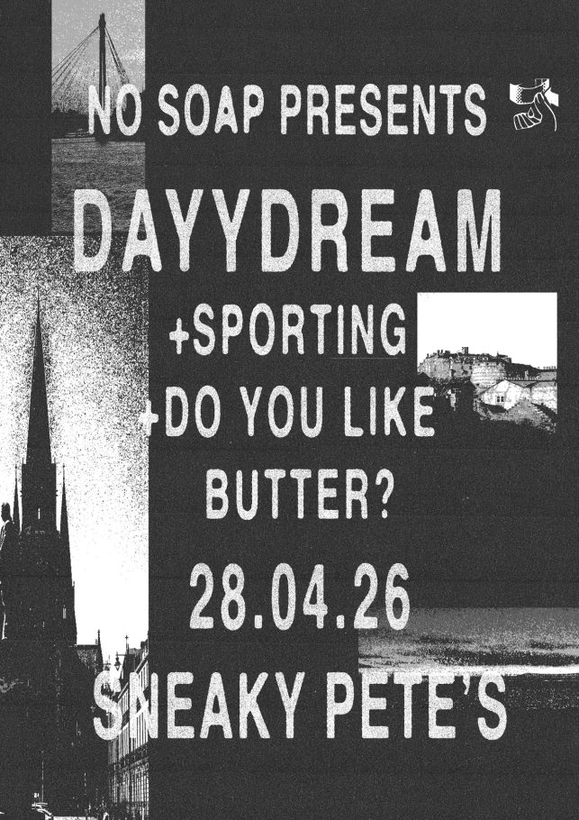 Dayydream is the songwriting project of Chloe Trappes, teaming up with friends Loup Havenith on drums, Samuel Rafanell-Williams on lead guitar, Dillon Salvi on bass guitar, and Ainhoa Garston-Rodrigo on violin and keys. Trappes’ songwriting has grown in ambition, style and scope, encompassing aspects of dream-pop, slowcore and indie-rock. Chloe initially self-released her debut EP ‘Bittersweet’ in 2022. A solo effort produced by Agnes Haus, it garnered radio play from Pacific Notions (KEXP) and Soho Radio, with features from Get in her Ears and Bandcamp’s New and Noteworthy section. Since then, Dayydream have released a plethora of lo-fi singles, supported Teethe, Cryogeyser, Deary, Maria BC and Skydaddy, as well as headlined in Glasgow and Newton-Stewart. As of 2026, after nearly three years of honing their live performances, Dayydream welcome their latest EP; ‘Trace’ via independent label No Soap. Their first body of work as a band, the five piece embrace the sentimentality and melodrama of coming of age via diaristic lyrics and ambient instrumentals. Their latest single ‘Proximity’ saw airplay from BBC Radio 6, and has been praised by Various Small Flames, Get In Her Ears, The Skinny, Snack Magazine, The Ugly Hug and Mix It All Up. Recently, their song ‘Dog’ from the No Soap Compilation tape was featured in the second season of the BBC show ‘Dinosaur’. Following the release of their latest EP ’Trace’ Dayydream will be headlining Glasgow, London and Edinburgh in the springtime, and plan on bringing their dreamy sound to further corners of the UK.